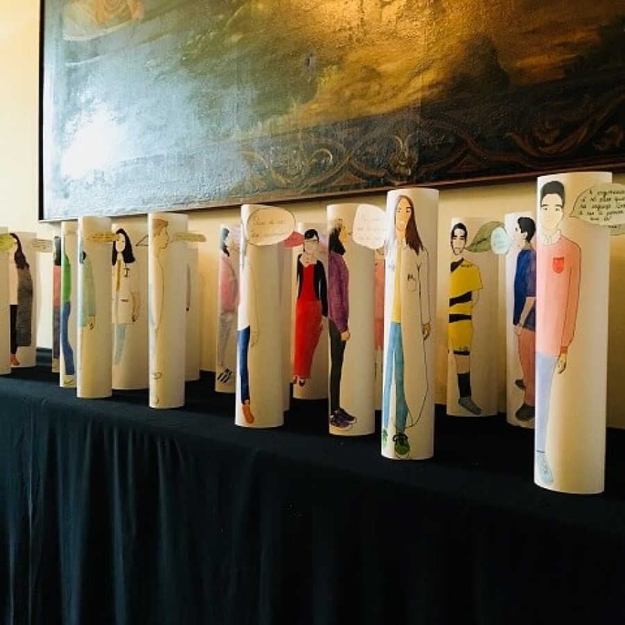Os finalistas de 9.º ano, que se encontram num ano de decisões e escolhas importantes para o seu futuro, apresentam este trabalho da figura humana, em forma de um diálogo estabelecido consigo mesmos, do presente para o futuro, expressando os seus sonhos e...